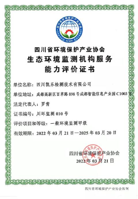 |  生態環境監測機構服務能力評價證